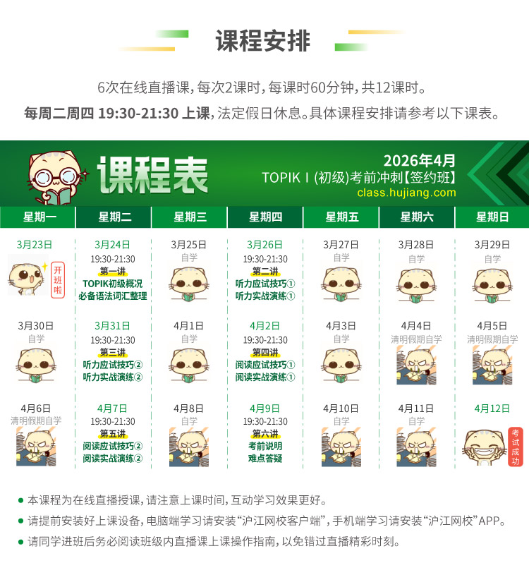 纯在线直播课程,考前一月帮你迅速提升TOPIK成绩!