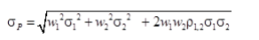 The standard deviation of a two-asset portfolio is given by the square root of the portfolio's variance: