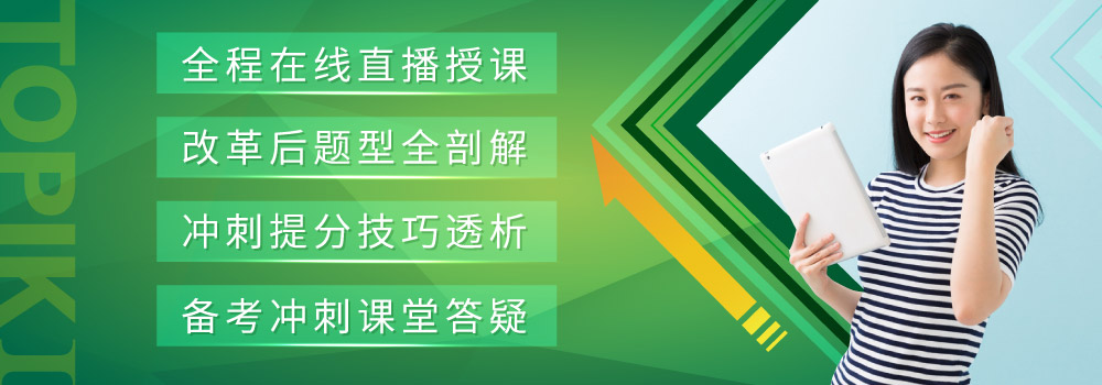 入了中高的题型部分,大部分水平只在中级的同学就会比较吃力了。 听力复习侧重点: 词汇量。词汇量很致命,它会直接导致你,听懂或者听不懂。 语法和韩语表达方式。多听,听力其实大部分的选题,可以通过语气来判断。只要熟悉韩语说话的语气是可以通过预期来判断答案的。 읽기 改革之后的阅读有50道题目,时间是70分钟。难易度为渐难,其中后面有7个长文章(3个中级的,4个高级)。对于中级的同学来说的话,后面的几个题能做完几乎是不太可能,后面长文章文章场,词汇难,语法难,文章结构也是完全符合韩国人的逻辑思维。一个建议中级的同学就不要去碰后面的7道题目,专心去做前面的阅读。 阅读复习侧重点:词汇量。提高阅读速度单词量绝对不可减少。复习中对文章要精读,每一个单词每一个语法都要看透吃透。真正考试的对文章就是泛韩国语能力考试(TOPIK)是现在唯一的鉴定和评估一个人的韩语水平的权威韩语考试。考试的结果可用于申请韩读了,不要左右反复的去读,找准主宾谓,去掉一些多余的添意词语。抓住重点理解就好 쓰기 一共只有4道题,就是这个4道题给考生带来了非常的痛苦。4个题,两个造句题,一个大作文一个小作文。写作备考时相当的复杂的。 先说一下在写作考试时间的安排