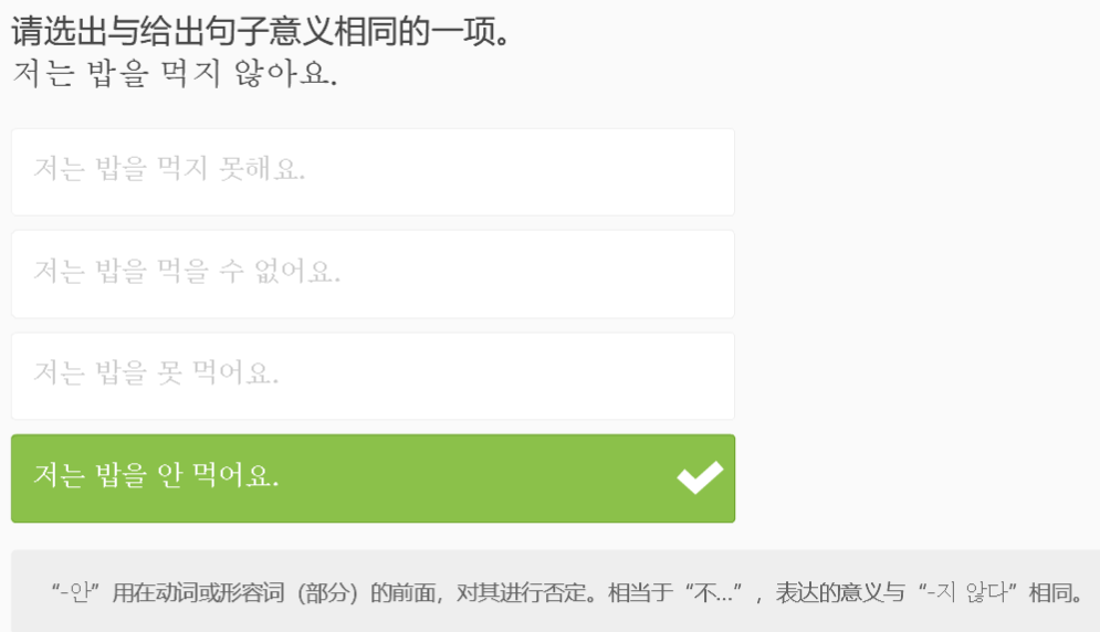 在第二道问题中,解析只给出了为什么选第一道的原因,지 못하 也有表否定的意思,为什么不能选第四个选项?