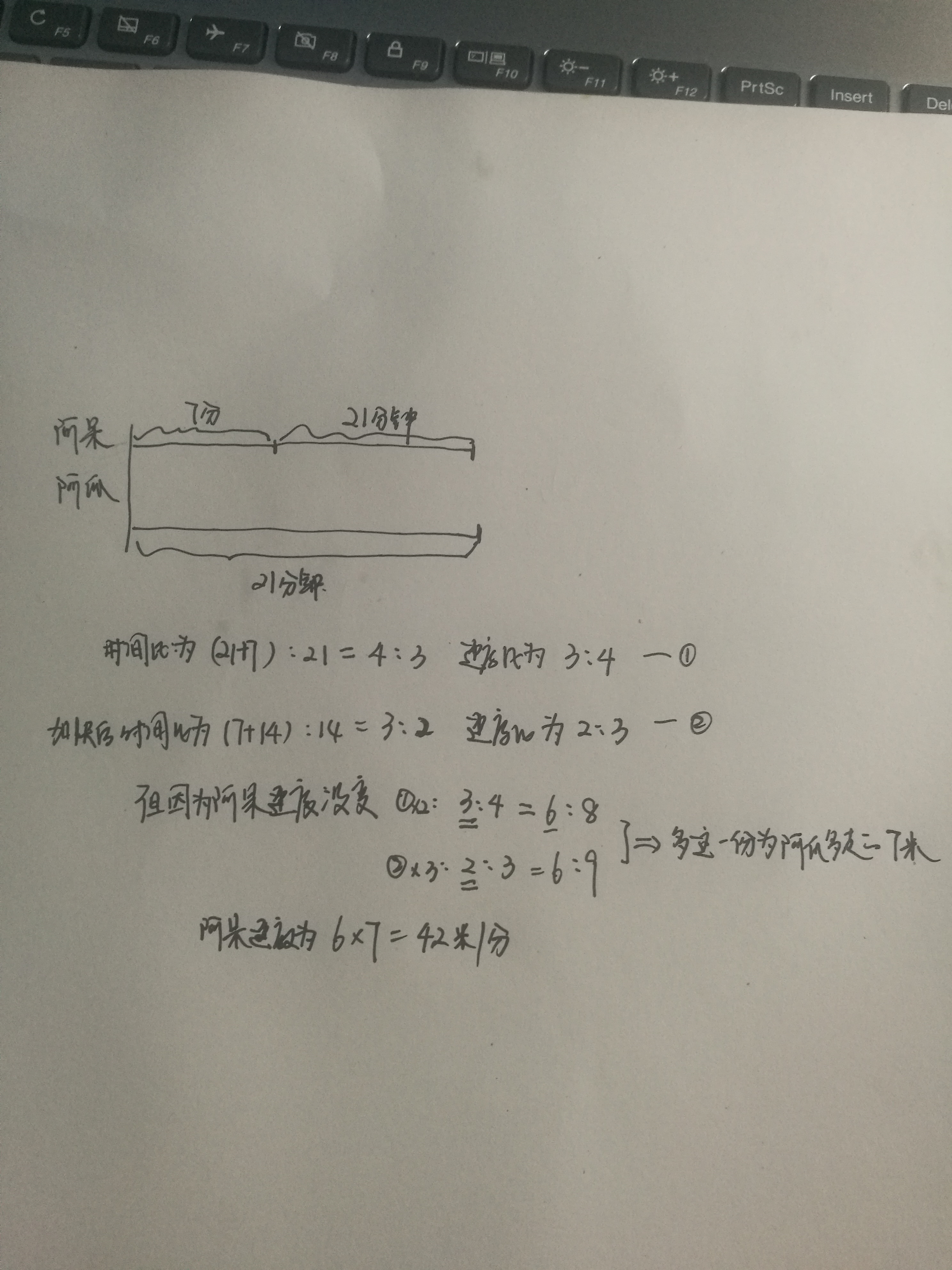 如果按照例题五的思路来处理这个练习题,阿呆每分钟走多少米是不是应该这样计算??