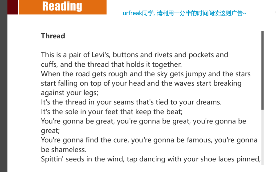 不是说本章结尾有anna最喜欢的那段levi's广告的广告词的么?