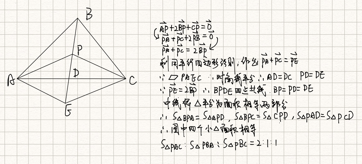 三角形abc满足向量ap+向量2bp+向量cp=零向量那么求△pbc:△pca:△pab的面积比