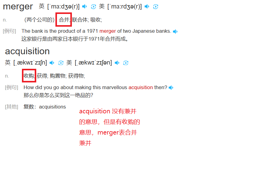 我查了一下,acquisition一般和merger放在一起,成为merger and acquisition 意为兼并和收购,没有找到acquisition为兼并的意思