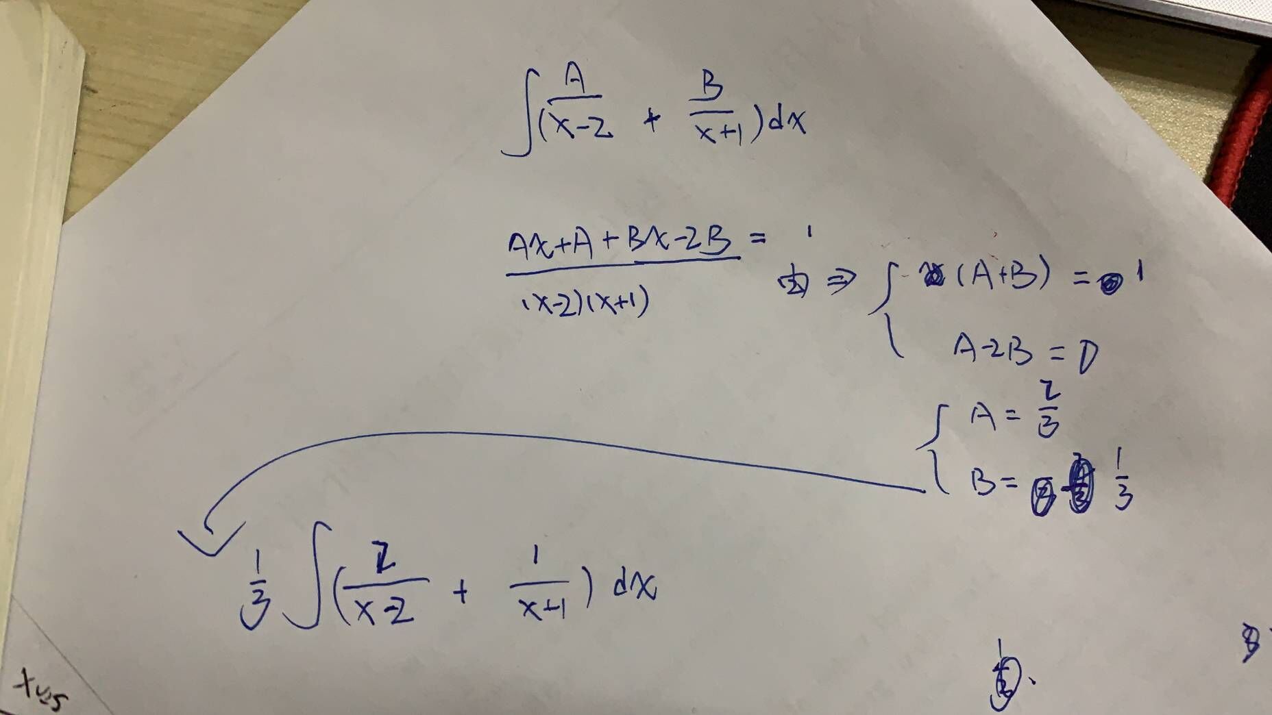 这个有理函数待定系数法计算的,原式等于∫A/(x-2)dx+∫B/(x+1)dx,然后用待定系数法解出A、B版权申明:知识和讨论来自课程:《2020考研公共课名师联报班 政治+数学+英语一【天猫专享】》的学员和老师,如果想了解更多,可以报名参加课程学习。所有知识讨论内容,版权归作者及沪江网校所有。