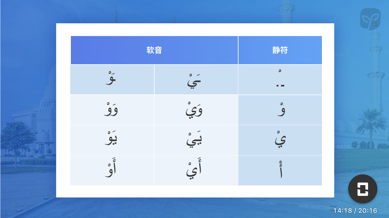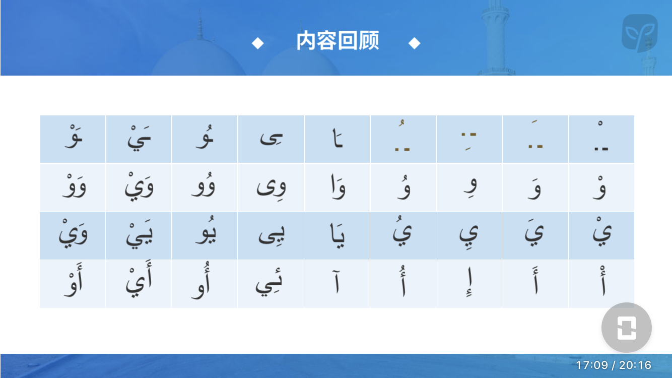 同学你好,该知识点来自沪江网校《阿拉伯语零基础至中高级5.0版【学霸班】》的课程,想要更系统的学习,欢迎进入课程学习。不仅可以和更多的同学一起学习,而且还有老师、助教随时的学习指导和知识点解答哦。