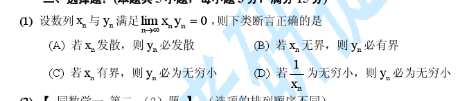 C,,比如Xn为1/n^2...Yn是n,就可以了,D题目抄错了,,原本的题目是这样