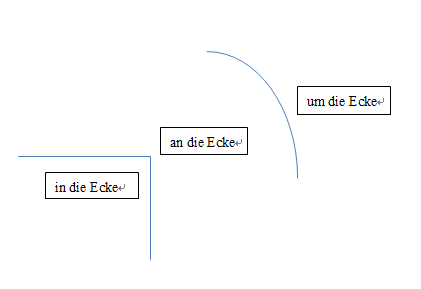 an die Ecke, in die Ecke 和um die Ecke的区别是什么?