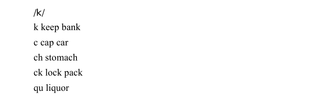 老师,这里面,好多字母组合不全啊,比如发K的音的有;K CK C ,但这里面只讲了K和CK ,没有讲C啊