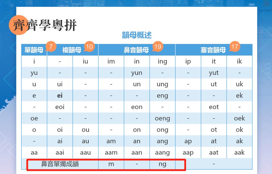 粤语中单独成韵的韵母是哪两个?