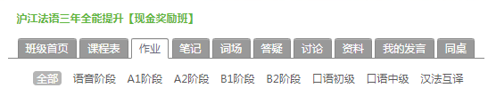同学好,使用沪江网校app或者电脑都可以在班级首页看到-作业区,根据标签分类可以找到语音作业/A1阶段/A2阶段等作业
