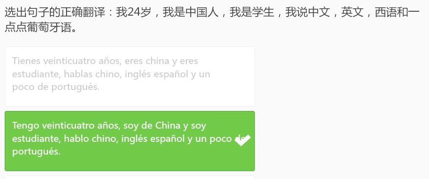 网校学员Dra**在学习西班牙语零起点至0-A2中级签约备考班【2019第2期】时提出了此问题,已有1人帮助了TA。