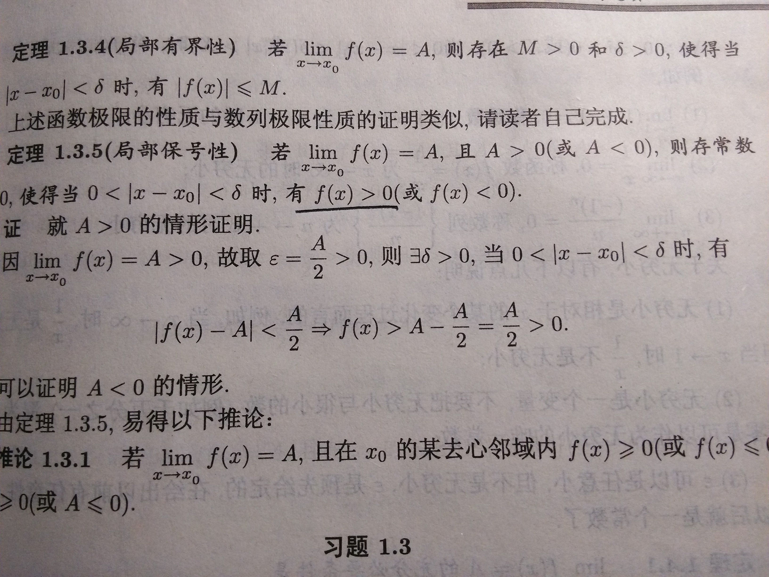 局部保号性的证明,晓千老师省略了A<0的证明,自己没有推理明白,可以帮忙写一下证明过程吗?