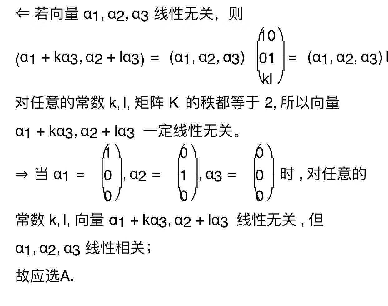 没有直接的定理可以直接的推导出正确答案所以两种方法去选答案,一个是反推法,一个是举反例
