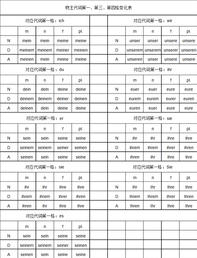 1.为什么“我妈妈”“我的德语老师”前面一个用的是meine,一个是mein?