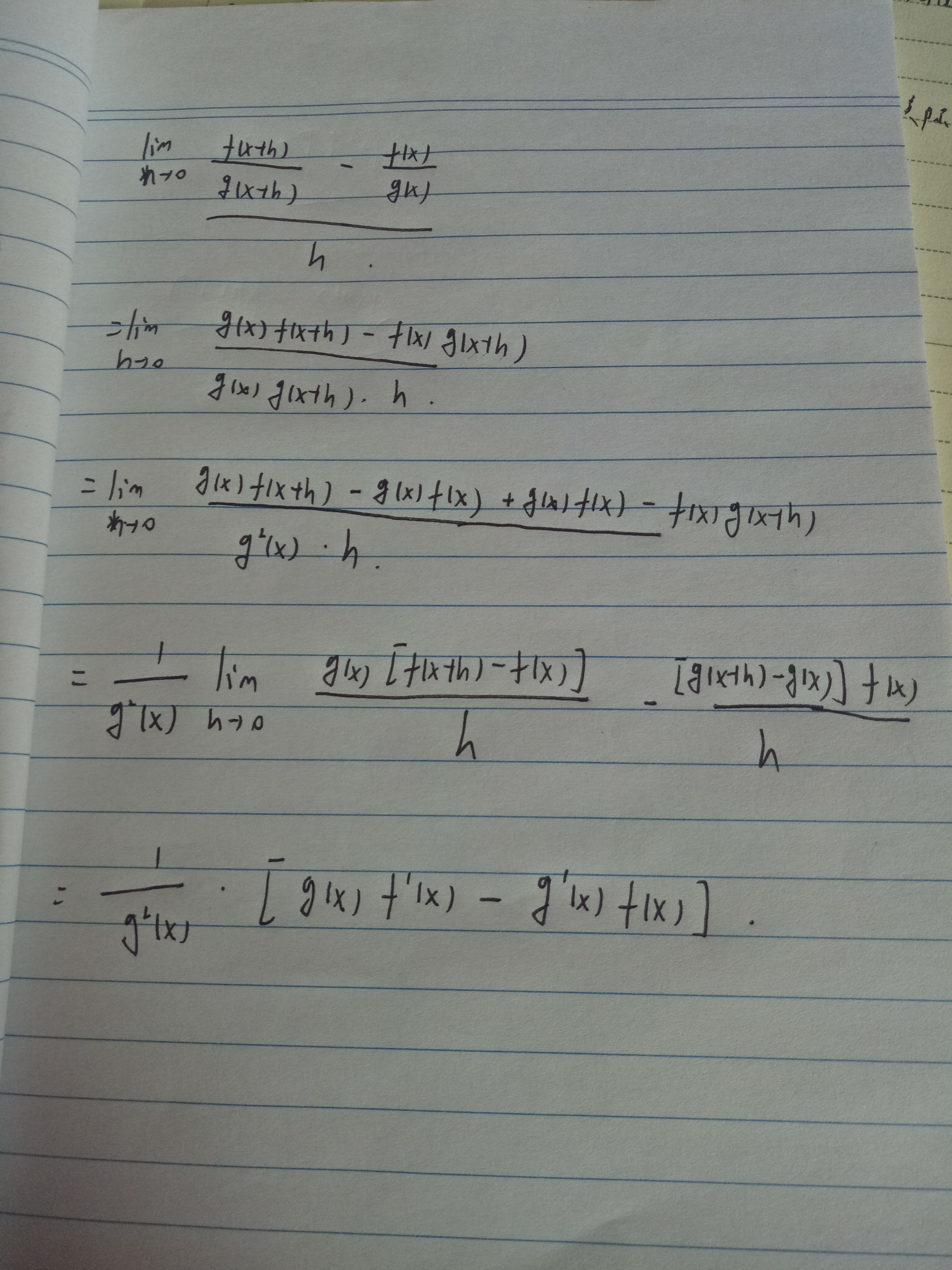 【高数基础课-导数的计算】中老师提到用导数定义证明四则运算商公式。我这样写了,但是不知道怎么将分母的g2(x)加进去