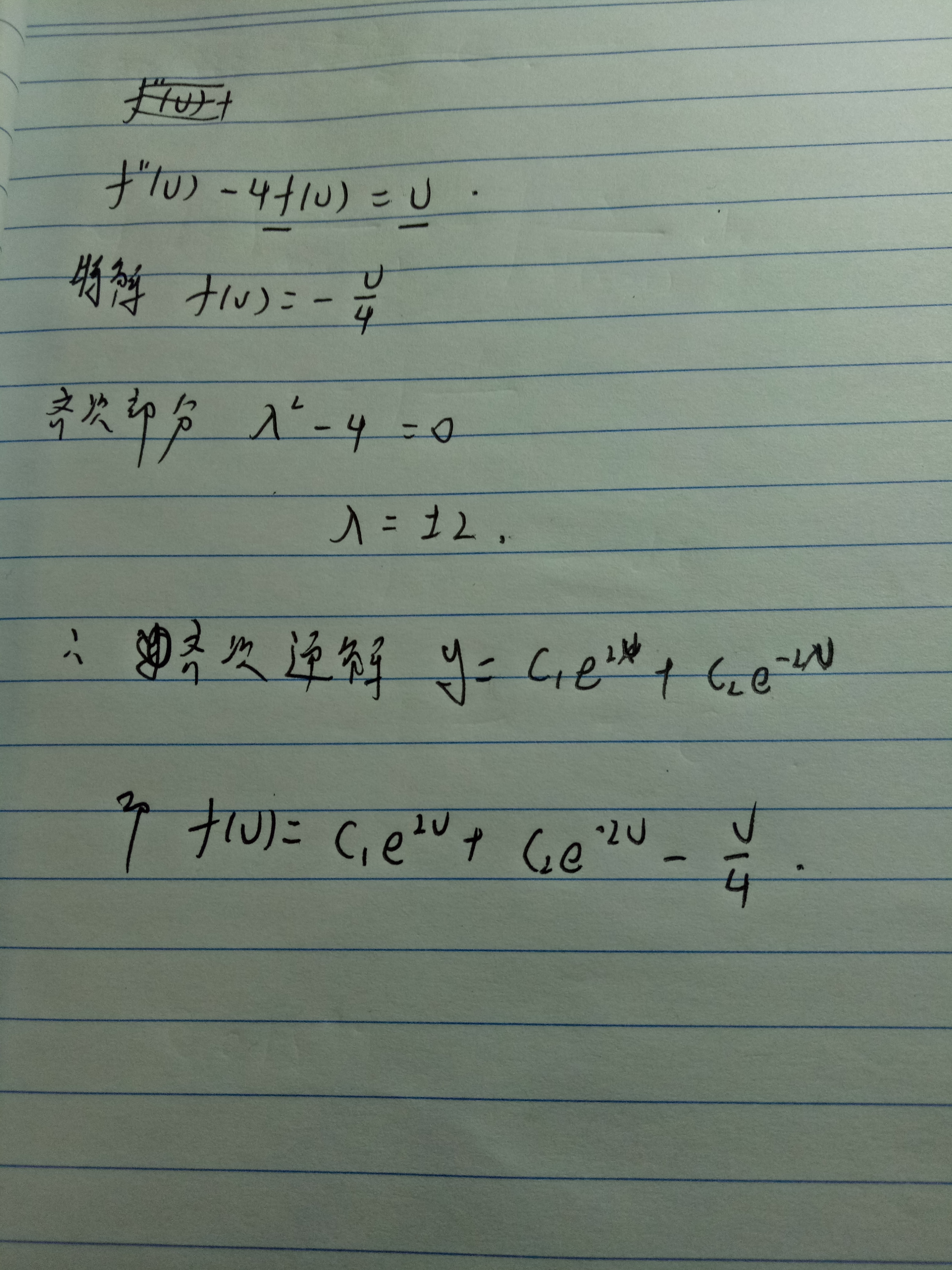 特解直接就可以得到了啊。。u与f(u)对比。。或者计算法,,y=au+b。。。二次导等于0,,直接带入求a..b