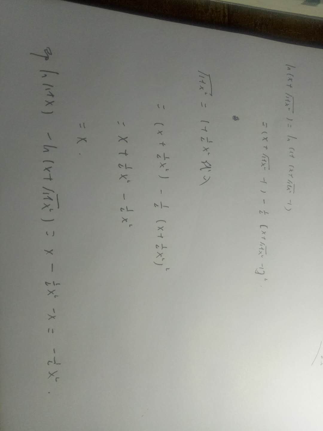分母ln(1+x)等价x,,,前面的等价(x+根号下(1+x^2)-1)。。。。按最低次原则,,等价x的,,所以分母等价x^2