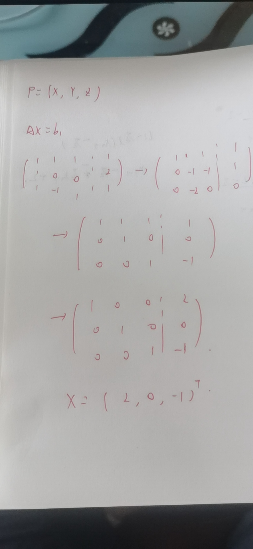 解方程组,,同样的方法解Y,Z,合起来就是P