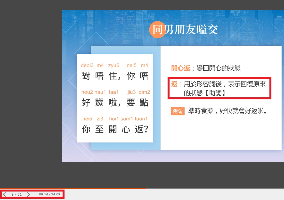同学你好,该知识点来自沪江网校《港你知粤语入门至初级【随到随学班】》的课程,想要更系统的学习,欢迎进入课程学习。不仅可以和更多的同学一起学习,而且还有老师、助教随时的学习指导和知识点解答哦。