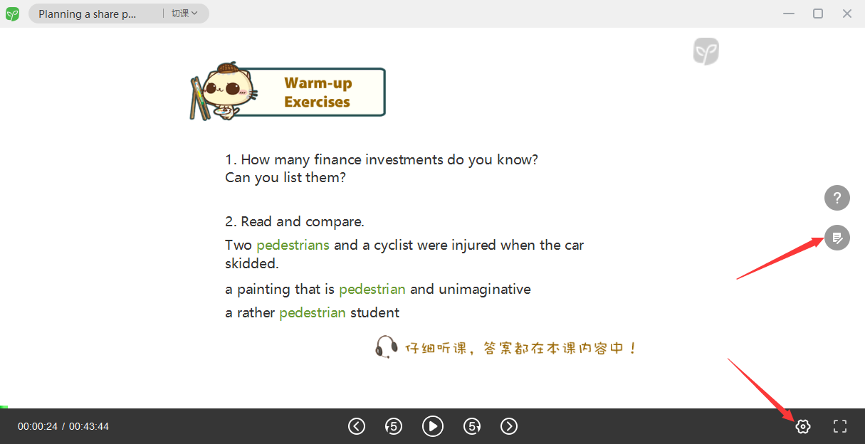 同学你好,该知识点来自沪江网校《英语零基础直达大学六级【3年随心畅学班】》的课程,想要更系统的学习,欢迎进入课程学习。不仅可以和更多的同学一起学习,而且还有老师、助教随时的学习指导和知识点解答哦。
