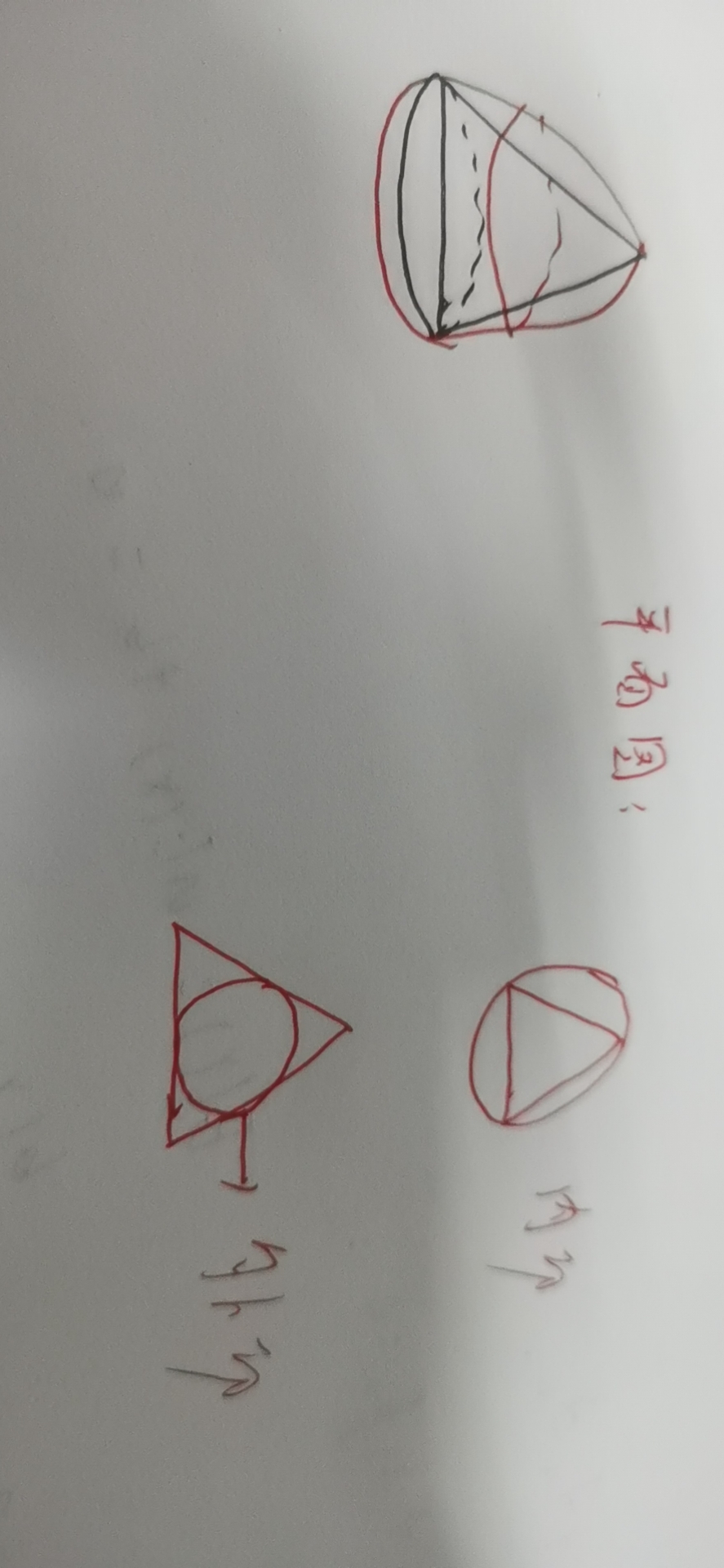 如图,关于外切内切我搞不太懂,如果题目改成内切于正圆锥,那图应该是咋样的?难道球还能在圆锥外面?