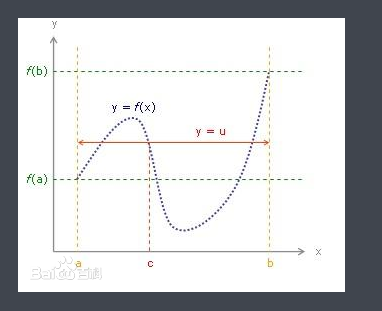 已知两端值,可推断必然存在 一个数在定义域区间之内,得到的值为两端值的中间一个值