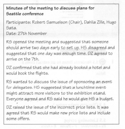 书上的第53页,第4题,根据第3题写meeting minutes ,书上的答案在哪里?