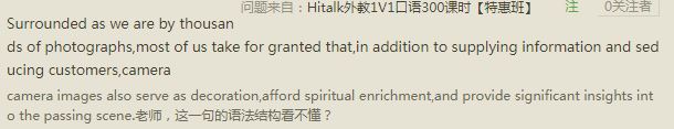 同学好,版权申明:知识和讨论来自课程:《Hitalk外教1V1口语300课时【特惠班】》的学员和老师,如果想了解更多,可以报名参加课程学习。所有知识讨论内容,版权归作者及沪江网校所有。