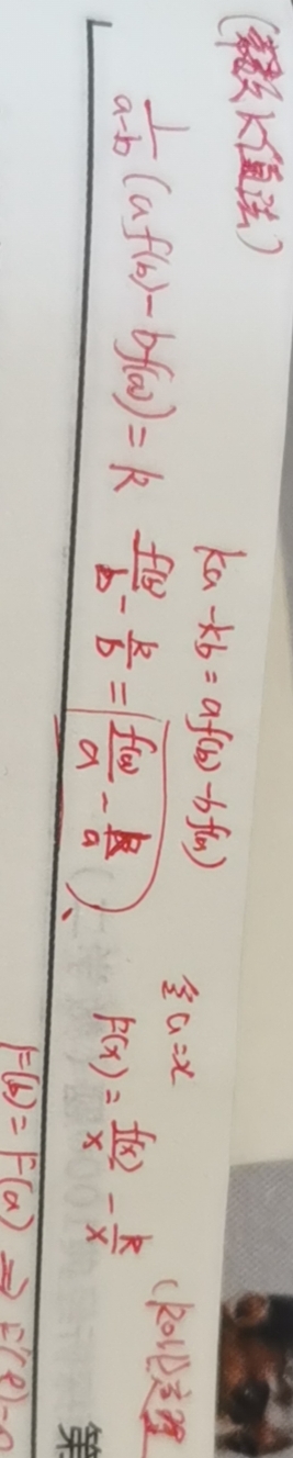 常数k值法其实就是罗尔定理最后用,而证明常数k值法的证明实际上用的是拉格朗日中值证明的~当然这题也可以直接用拉格朗日中值做~