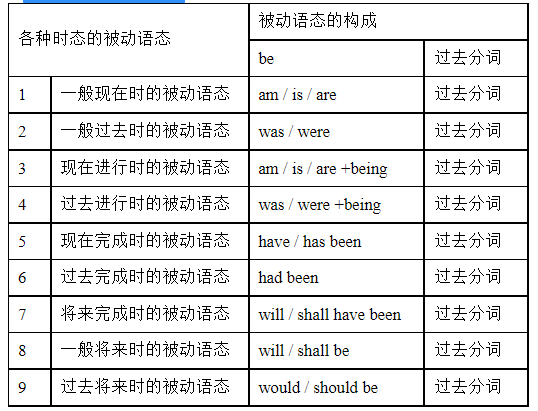 2. 九种时态的被动语态