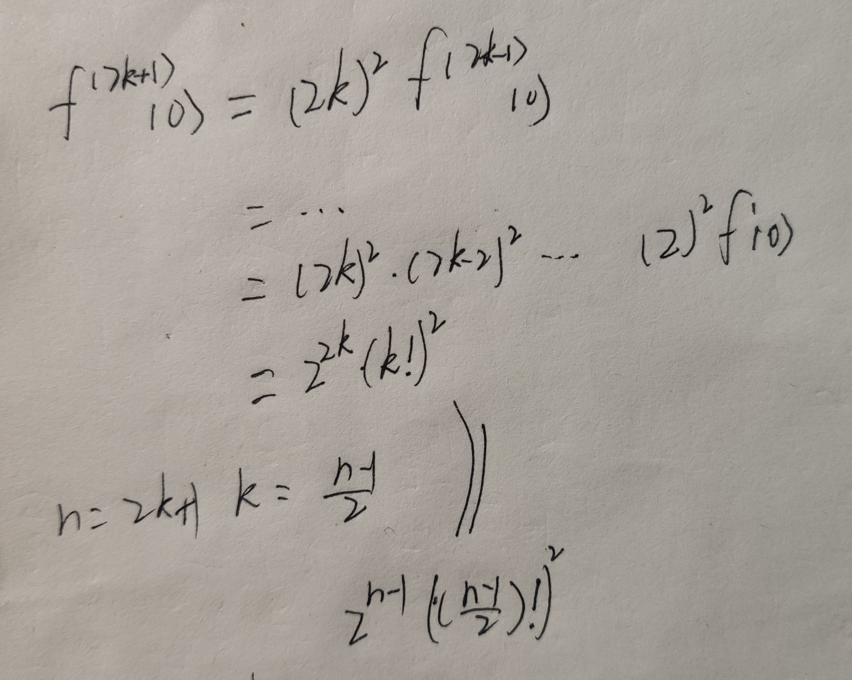 最后的结果f(n)(0)是怎么推出来n为奇数时的表达式的?