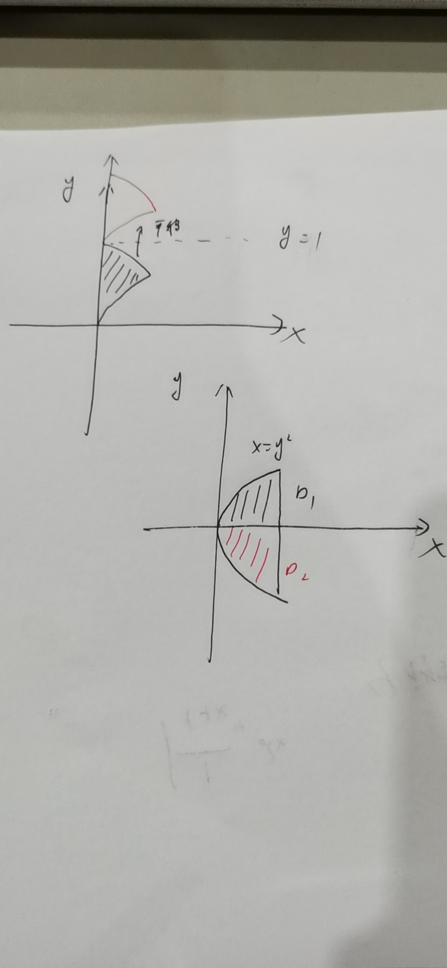 不是平移后的图形旋转的,想要把图形移到y=1上方旋转,应该是原图形关于y=1对称的另一侧的这个图形才是,这个不是平移的,,就比如这里的D1与D2是对称的那半边不是直接平移