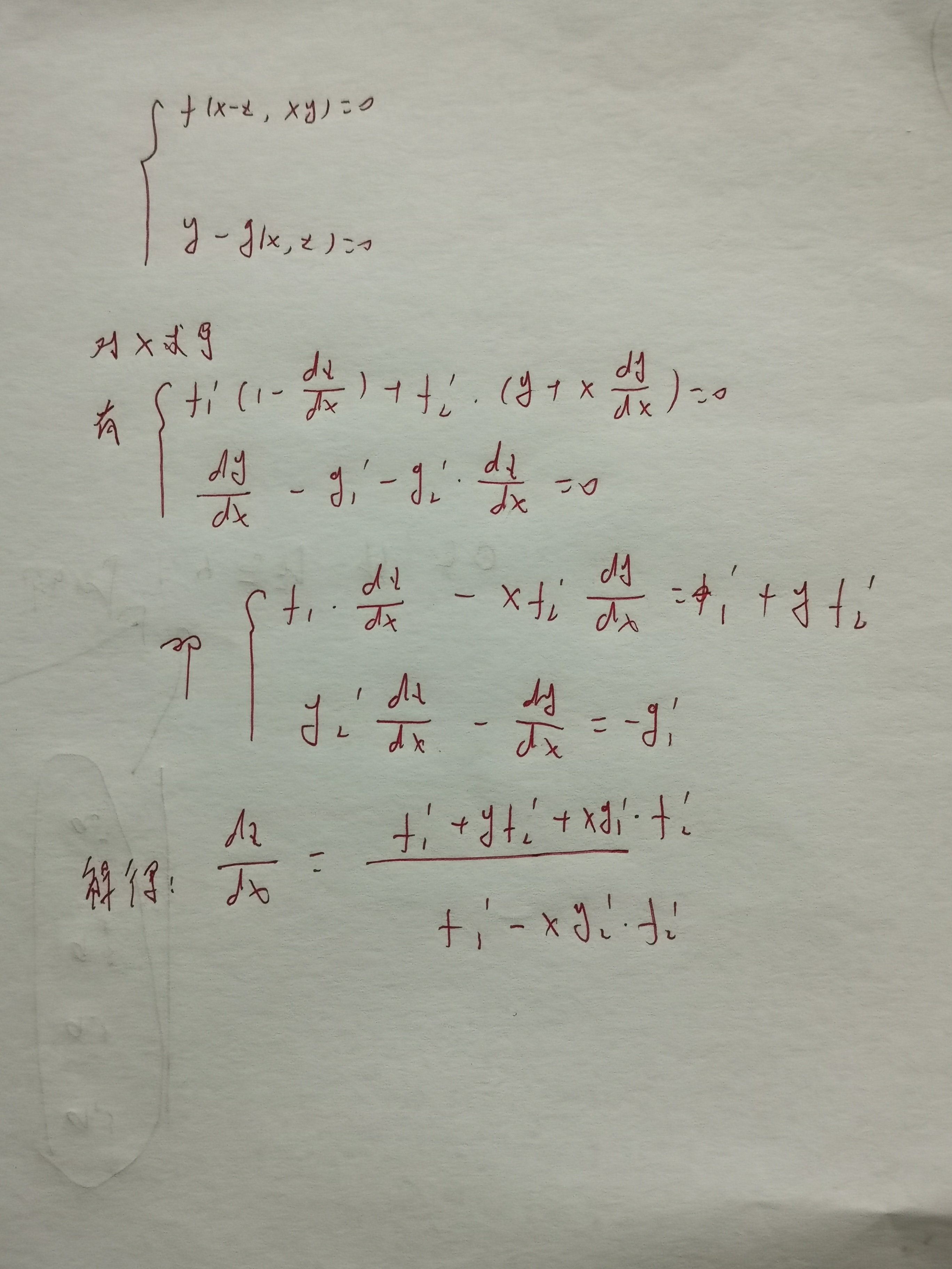 设y=g(x,z),z=z(x,y),由方程f(x-z,xy)=0确定,其中f,g均可微,求dy/dx,dz/dx