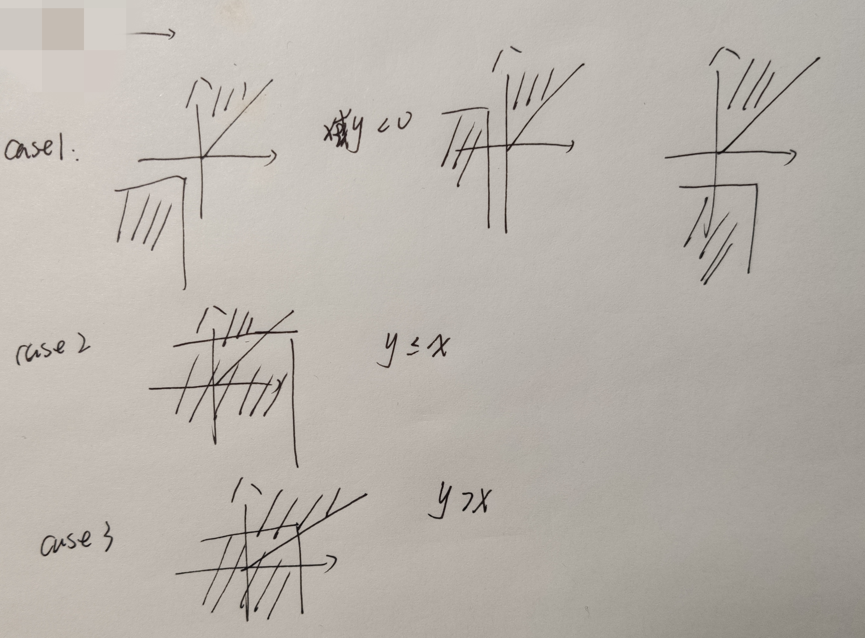 这个为什么还要讨论y小于x的情况啊?题目给的范围不是y大于x吗?
