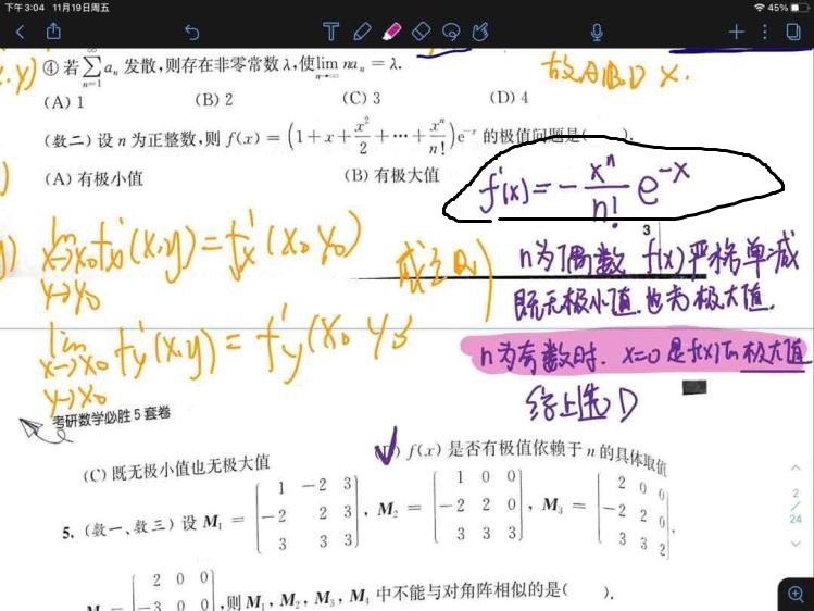 这个地方,x《0..f‘(x)不是大于0吗,x>0的话,是小于0,,n为奇数的时候