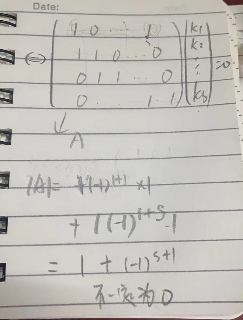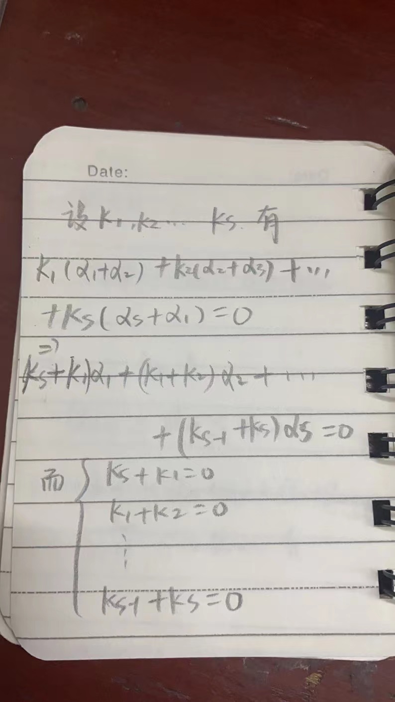 若α1,α2,......,αs线性无关,则α1+α2,α2+α3,......,α(s-1)+αs,αs+α1一定线性无关