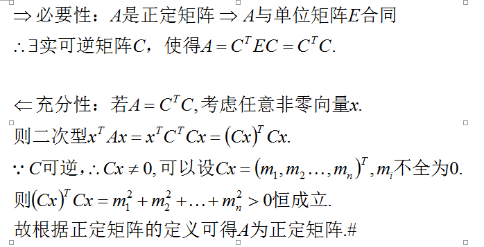 证明A是正定矩阵的充要条件是存在可逆矩阵C使得A=CTC