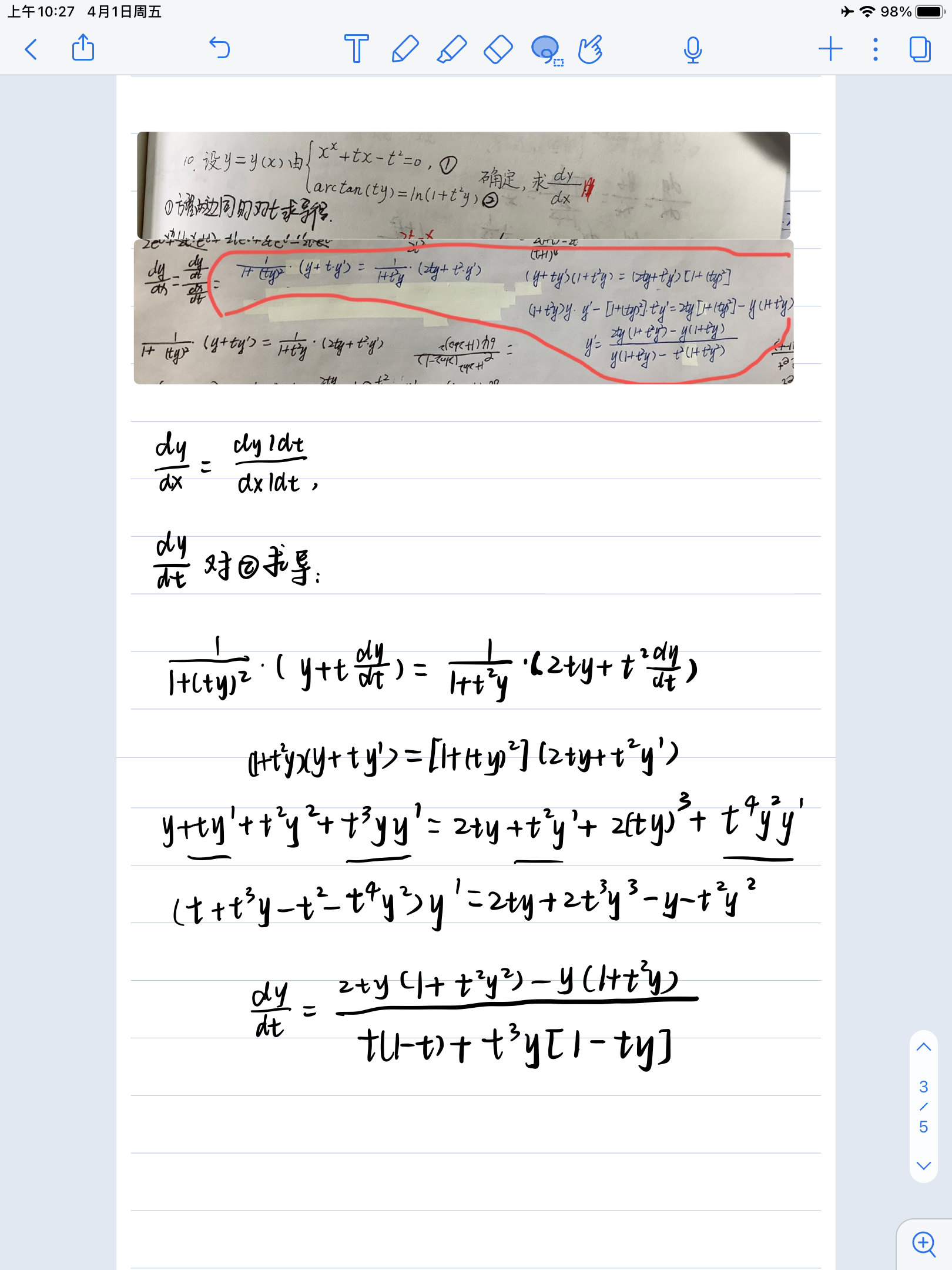 这个蓝笔写的过程没有错吧,算了好多遍都是这个答案,但还是和标准答案不一样