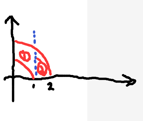 你写错了呀,x取值可以是0-2的,因为用x=x0去上穿,是会穿过两个区域的,所以需要分段