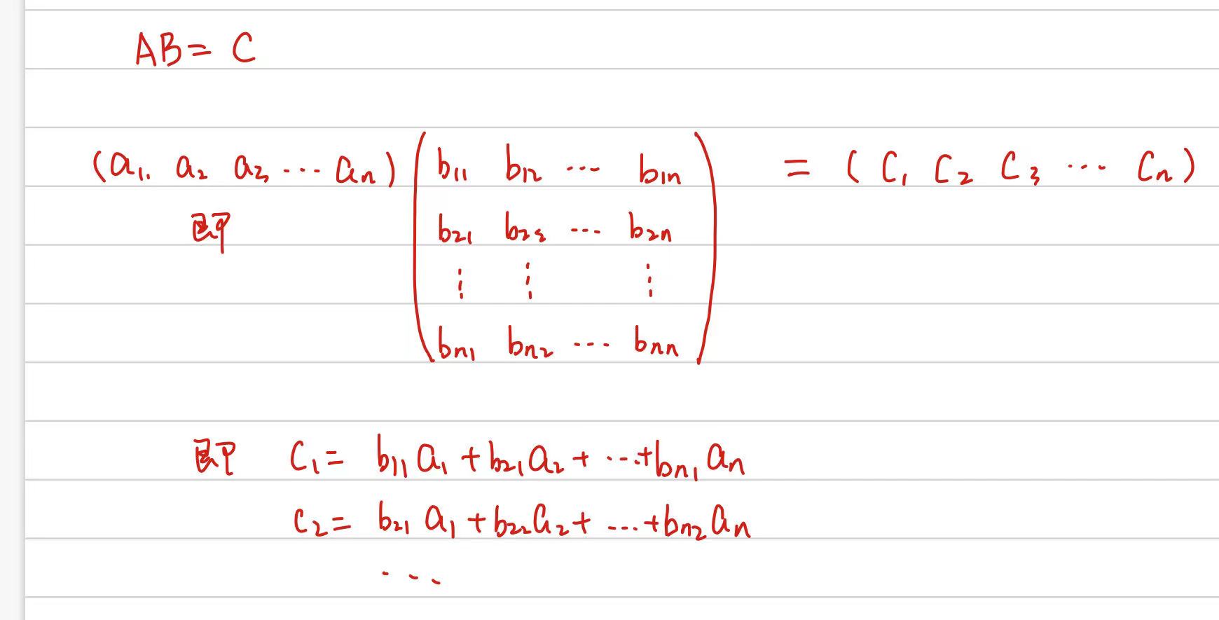 因为AB=C,则C的列向量可由A的列向量表示呀,所以是列向量的关系