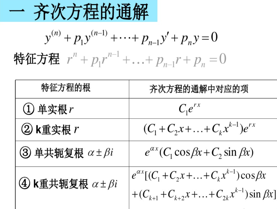 对于二阶微分方程的通解。但题目有的时候会出现三阶微分方程。麻烦老师帮我看一下我写的对于三阶微分方程的解的分类全不全。以及每种情况的通解怎么写。尤其是后两种情况