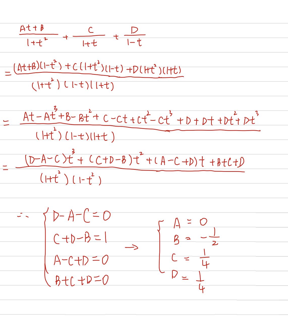 请问一下解ABC D的过程,不知道哪里写错了,一直解不出来。