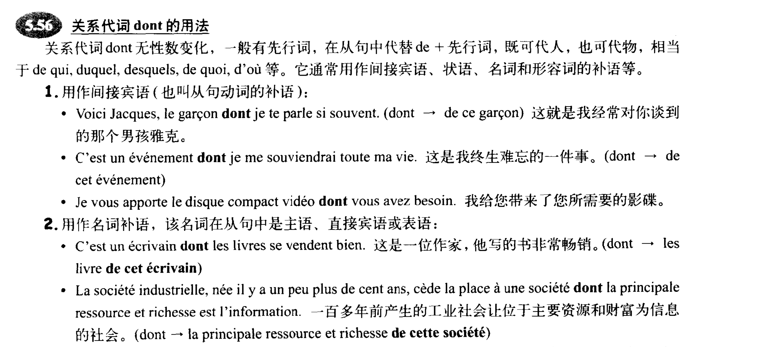是不是dont一般都是引导从句中的de加名词,而不是代替主句中的先行词。