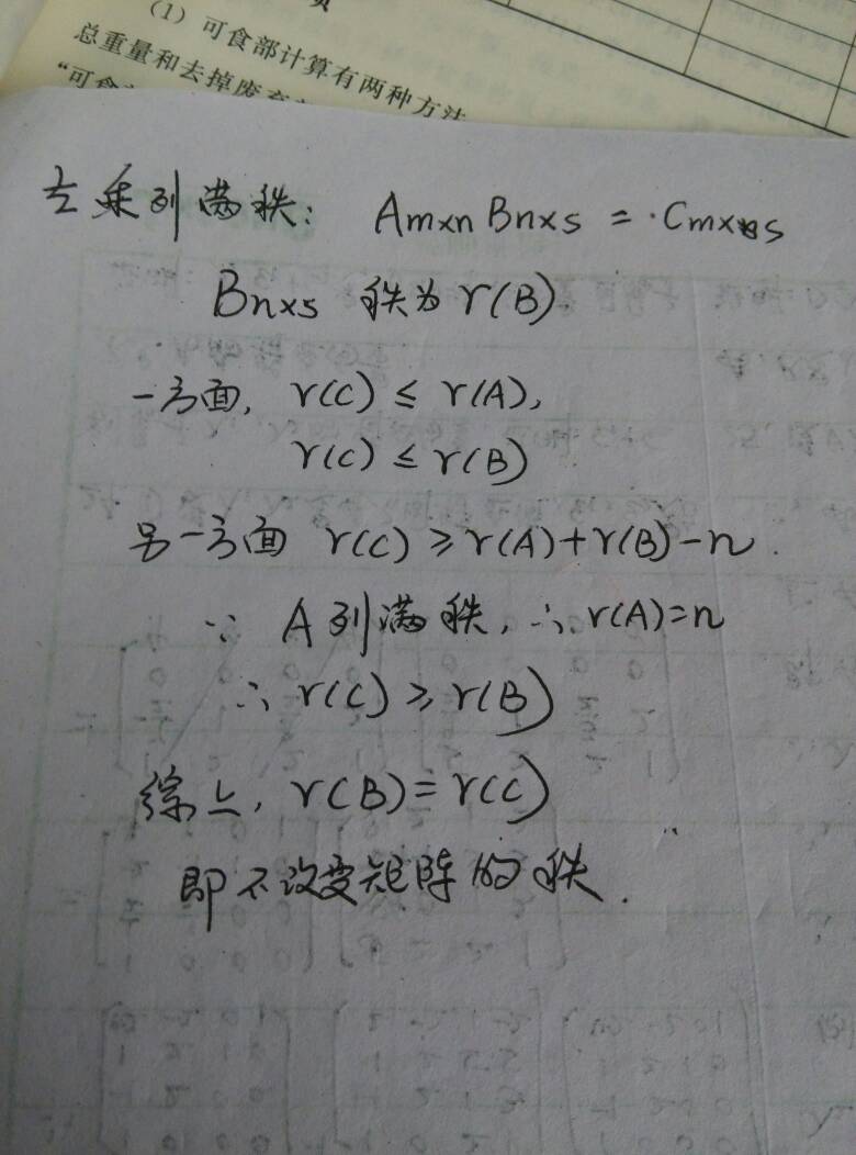 完整的是:任意矩阵左乘列满秩或者右乘行满秩不改变矩阵的秩