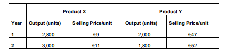 The total output in units and average selling prices in a hypothetical economy producing only two products, X and Y, is provided: