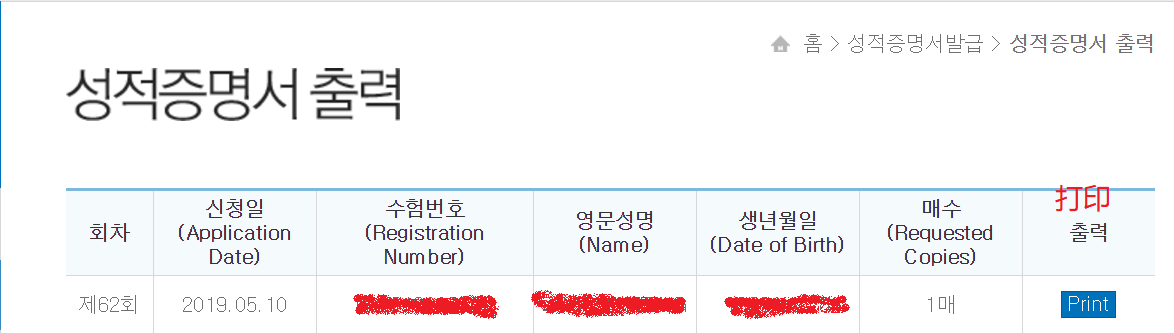 2019年7月1日起,只能打印有效期内的TOPIK成绩单。即,2019.7.1开始,能打印最早的成绩单是53届,之前的成绩无法打印。请需要成绩单的考生尽早打印。